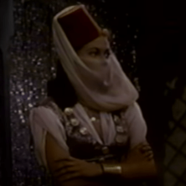 My guess is the movie Song of Scheherazade, which was released in March of 1947. The main female character, Cara de Talavera (played by actress Yvonne De Carlo), moonlighted as a cabaret dancer known as Scheherazade.